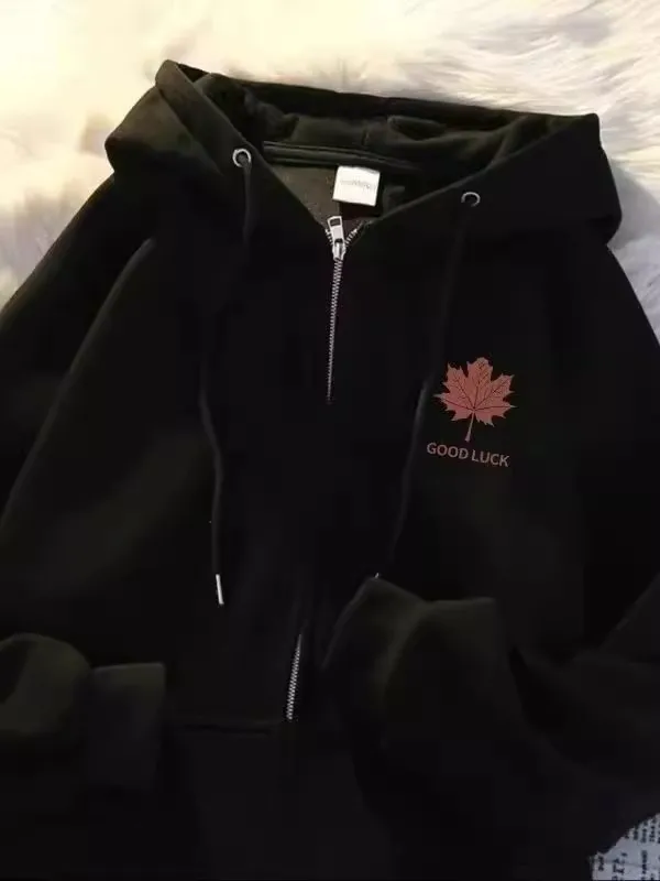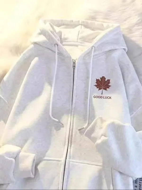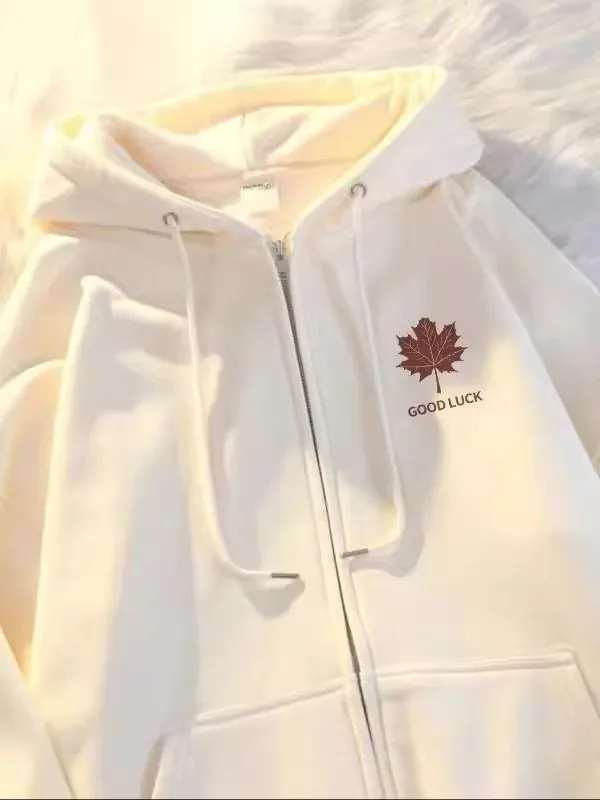 Shopmocho 2025 New Style Maple Leaf Print Unisex Oversized Versatile Zipper Casual Fashion Outerwear Polyester Comfortable Leisure Coat