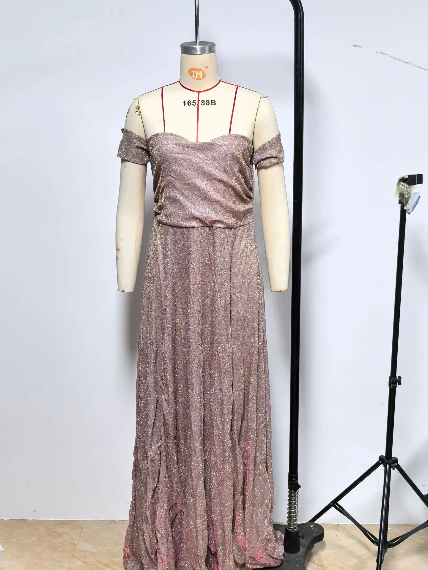 Shopmocho Ladies Dress Banquet Sequin Large Hem Strapless Sexy and Fashionable Slit Dress Summer 2025