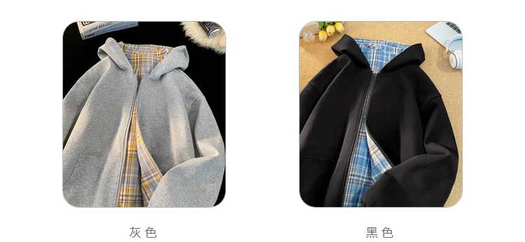 Shopmocho Reversible Sweatshirt Men's Hooded Cardigan Tide Couple Model Hooded Sweatshirt Plaid Jacket 2025 Autumn Unisex Hoodies
