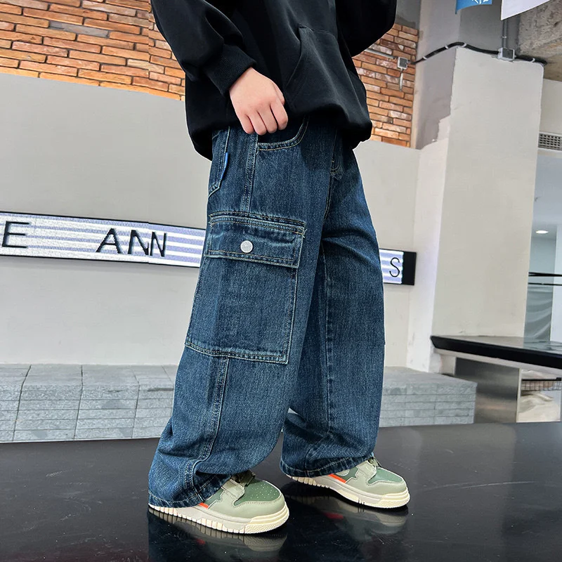 Shopmocho Teen Boys Jeans 2025 New Spring Autumn Pants Children's Straight Trousers Teenager Wide-legged Cargo Pants Kids Loose Clothes