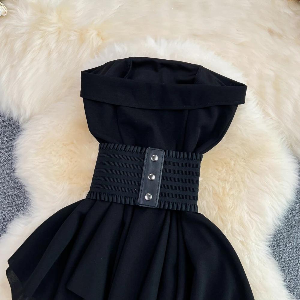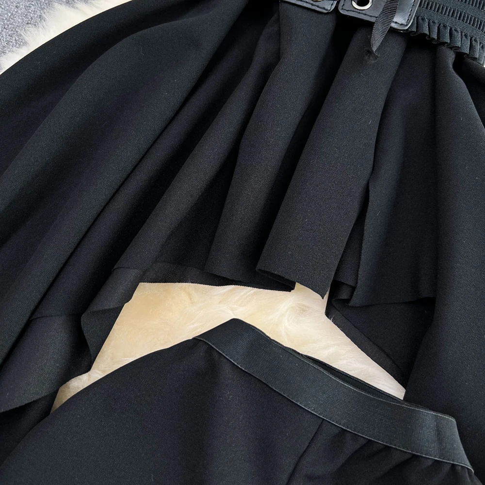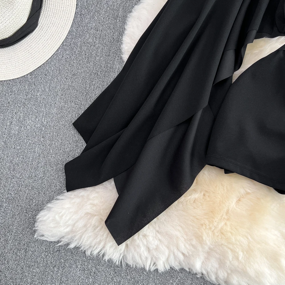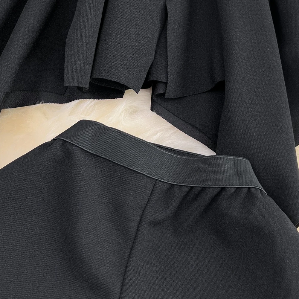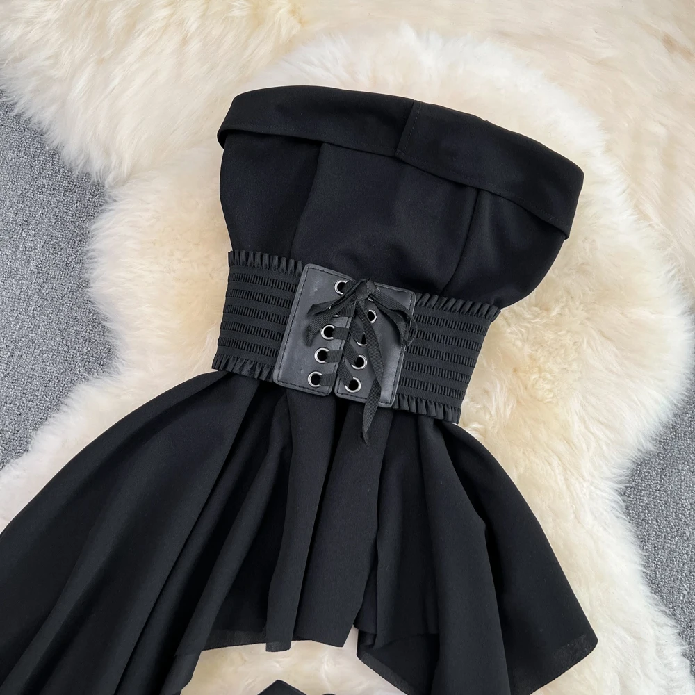 SHOPMOCHO2pcs Sets Women Outfits Fashion Strapless Irregular Skinny A-line Dresses+elastic High Waist Solid Wide-leg Shorts Femme Suits