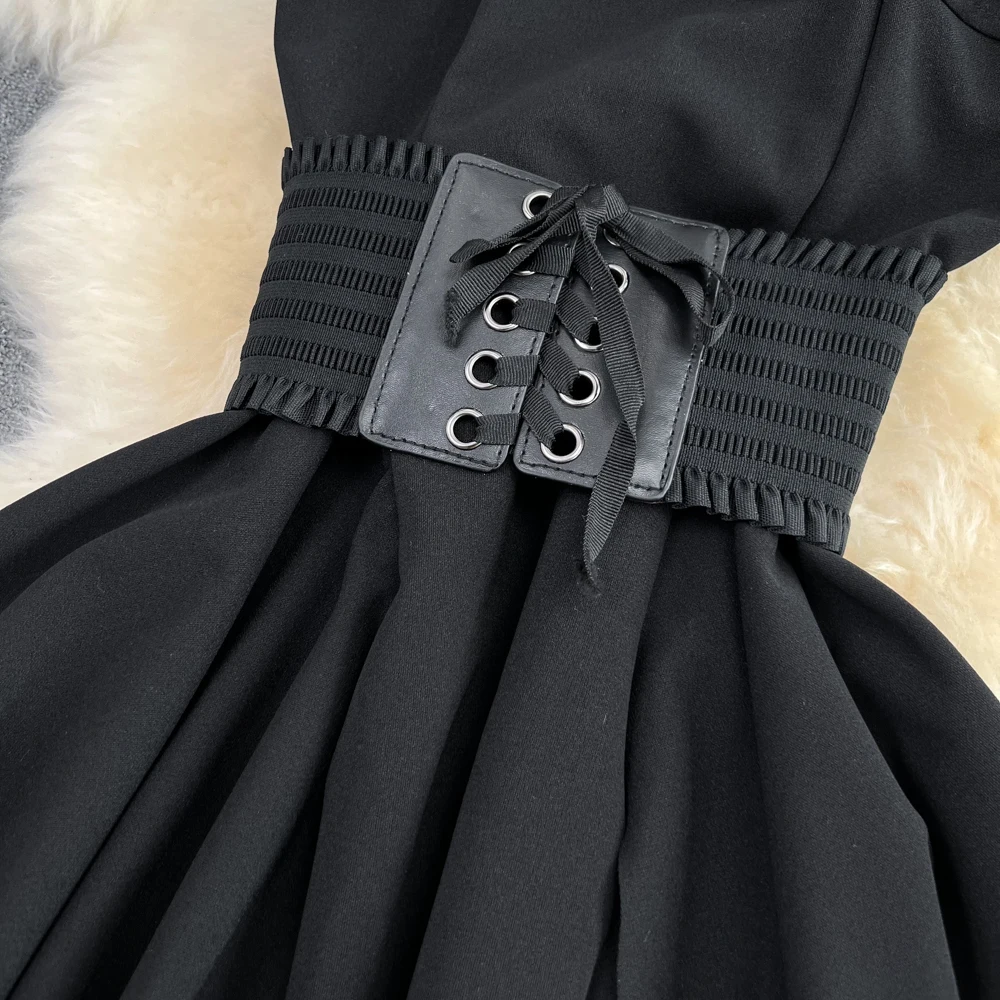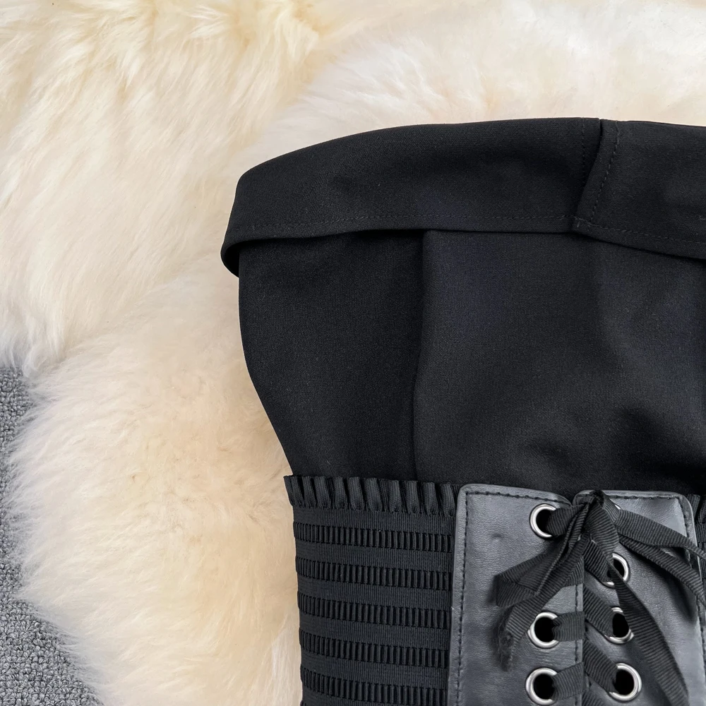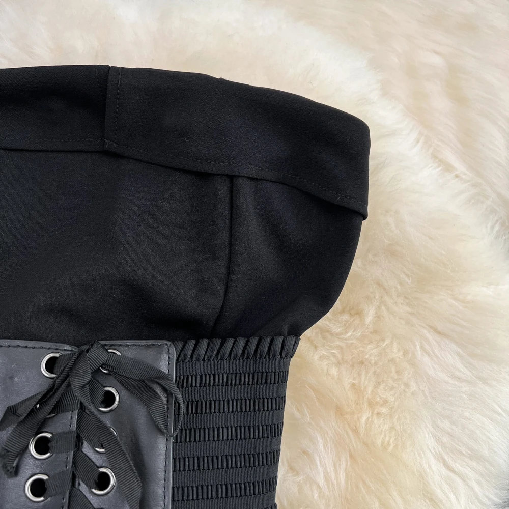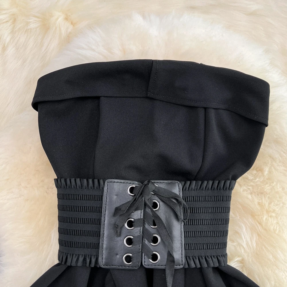 SHOPMOCHO2pcs Sets Women Outfits Fashion Strapless Irregular Skinny A-line Dresses+elastic High Waist Solid Wide-leg Shorts Femme Suits