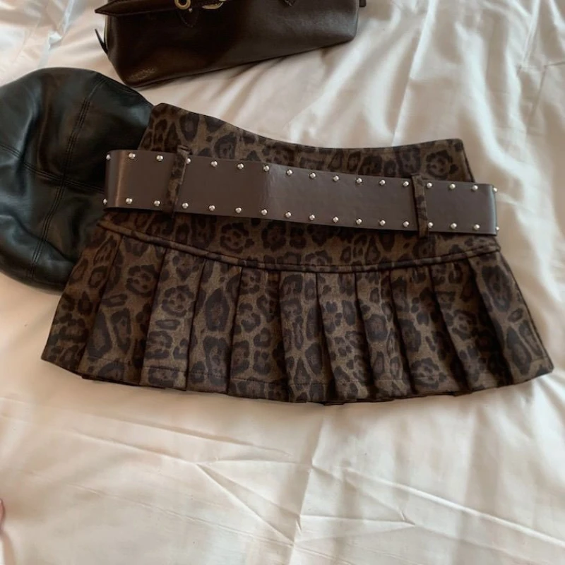 SHOPMOCHO Aesthetic Leopard Print High-waist Short Skirt Women's Y2k Sexy Hot Girl New Slim Pleated Skirts High Street Retro A-line Skirt